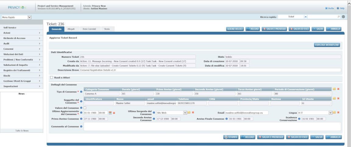Con questo form potete richiedere l’attivazione di un ambiente di prova di Privacy-Now® che resterà attivo per 30 giorni senza costi. Entro tale periodo potrete decidere di trasformare la prova in sottoscrizione a pagamento, mantenendo l’ambiente di prova oppure creandone uno nuovo. L’attivazione avviene rapidamente nelle ore successive all’invio del form. Riceverete una mail di conferma di questa richiesta ed una mail con i dettagli per l’accesso all’ambiente di prova una volta predisposto.
